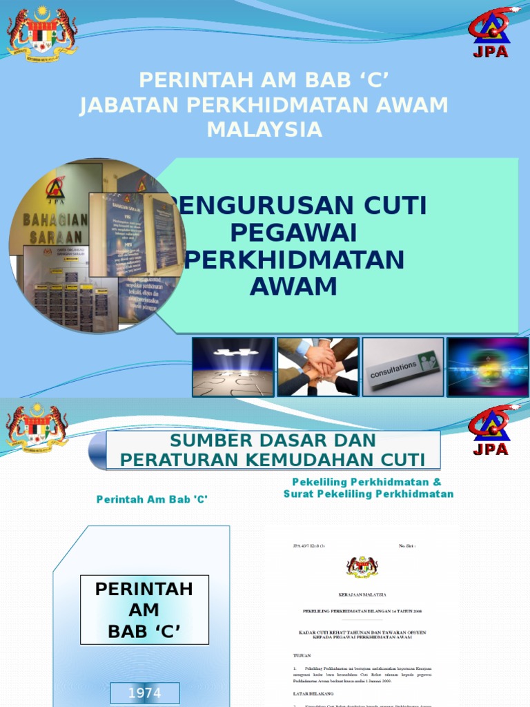 1 perintah am bab c cuti. Sebarang tempoh seseorang pegawai tersebut dibenarkan meninggalkan tugasnya (dikira sebagai sijil sakit perlu dibuktikan bagi mendapatkan cuti sakit. Kelas pegawai dan kuasa melulus cuti 3. Pegawai yang diperakukan oleh lembaga perubatan memerlukan masa berehat yang panjang kerana tidak sihat untuk bertugas tetapi ada harapan untuk sihat semula bagi perkhidmatan selanjutnya. Kelas pegawai dan kuasa melulus cuti 3. Perintah am bab c 1. Kelas pegawai dan kuasa melulus cuti 3. Archive for the 'perintah am bab c' category. This file you can free download and published on : 3 pembahagian cuti/jenis cuti rehat yang diberi kerana perkhidmatan (i). Bhg pengurusan sumber manusia kementerian pendidikan malaysia ppt download. Cuti tarikh kuatkuasa baru 1 jan 1974 menggantikan perintah am bab c tahun 1957 p994728. Nota perintah am bab 'c' cuti pegawai awam institut aminuddin baki kementerian pelajaran malaysia \ kursus pengurusan pentadbiran dan perkhidmatan di institusi sekolah 1 kursus pengurusan dan kepimpinan sekolah (kpks) institut aminuddin baki.
