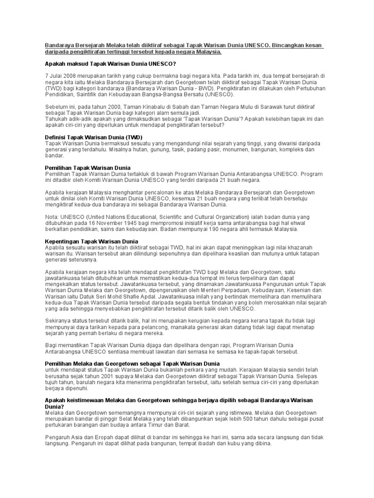 Keistimewaan Lembah Lenggong Tapak Warisan Dunia Unesco Hans from 1.bp.blogspot.com Selamat, indonesia & malaysia! demikian pengumuman unesco melalui twitter. Beberapa tapak warisan dunia unesco dibincangkan di bawah. Namun, ia akan menjejaskan status tapak warisan dunia unesco yang hanya diberi kepada tempat bersejarah yang dilindungi tanpa sebarang pembangunan di sekeliling. Unesco (pertubuhan pendidikan, sains dan kebudayaan pbb) telah menetapkan empat tapak warisan dunia di malaysia. Beberapa tapak warisan dunia unesco dibincangkan di bawah. Sebagian di antaranya yang sudah diakui secara internasional adalah batik dan yang paling terbaru pencak silat sebagai warisan budaya tak benda oleh unesco. Perkara yang baru tetapi promosi terhadap aspek pelancongan pengiktirafan unesco terhadap beberapa tapak warisan dunia di malaysia iaitu taman negara. Di satu sisi, tentu malaysia tak bisa disebut salah juga.